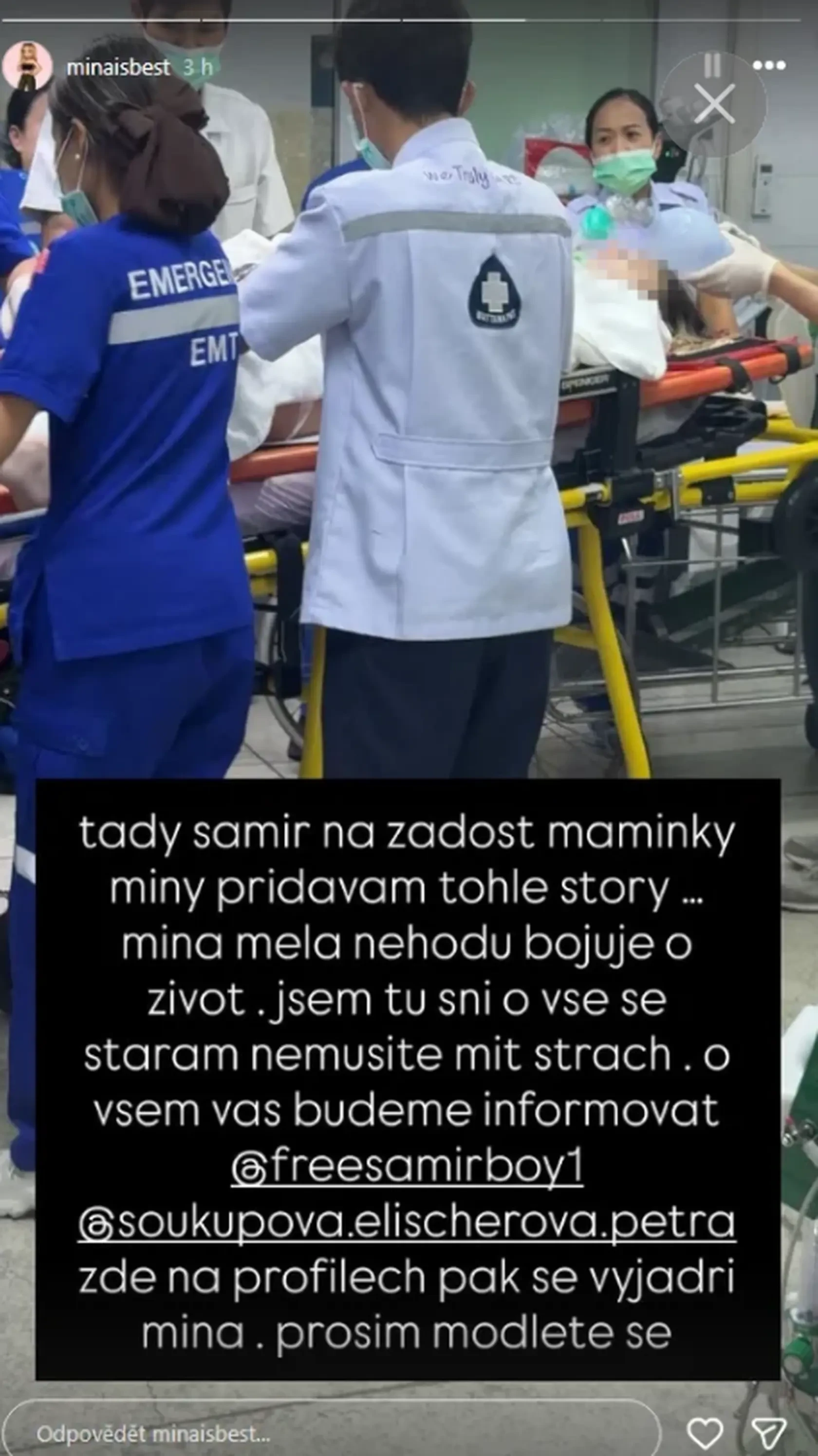 „Bola si najväčšou bojovníčkou a vždy budeš. Ďakujem ti za krásne zážitky,“ napísal jej kamarát Samir Margina k fotografii z nemocničného lôžka, kde Minu drží za ruku.